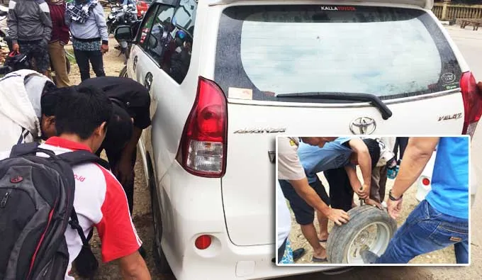 Menurut salah seorang warga yang berada dilokasi kejadian, yang enggan menyebutkan namanya, saat korban turun dari mobilnya untuk mengecek kondisi bannya. Tiba tiba muncul dua orang yang tidak dikenal, dengan menggunakan sepeda motor menghampiri mobil korban dan mengambil dua tas di dash board mobil korban.