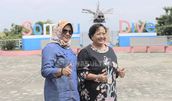 Wantimpres : Atasi Ketimpangan dan Kemiskinan Dimulai dari DesaBERKUNJUNG – Ketua Wantimpres Sri Adiningsih, didampingi Wakil Bupati Wakatobi Ilmiati Daud sambangi Sombu Dive, lokasi wisata berbasis masyarakat di Desa Sombu, Kecamatan Wangi-Wangi, Jumat, (21/7/2017). (Nova Ely Surya/ZONASULTRA.COM)