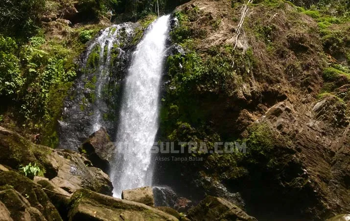ZONASULTRA.COM, KOLAKA – Aliran airnya deras jatuh dari ketinggian kurang lebih 60 meter, memecah bongkahan batu besar yang bersusun rapi di bawahnya. Menikmati keindahannya dari bawah, Anda akan merasakan hembusan angin yang cukup kencang dan airnya sangat dingin.