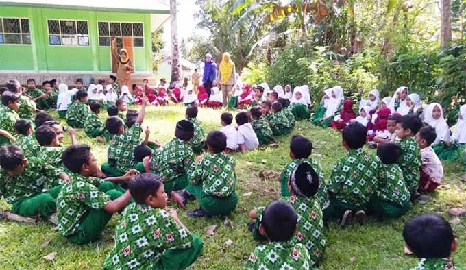 PEKAN LITERASI – Siswa dan siswi (MI) Raudhatul Jannah Kecamatan Tinanggea, Desa Bomba-bomba, Kabupaten Konawe Selatan (Konsel) saat mengikuti kegiatan pekan literasi, Jumat (4/8/2017). (Istimewa)