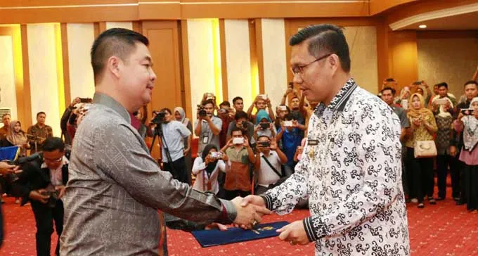 ZONASULTRA.COM, KENDARI – Penjabat (Pj) Gubernur Sulawesi Tenggara (Sultra) Teguh Setyabudi menyerahkan surat tugas kepada Wakil Wali Kota Kendari, Zulkarnin sebagai Pelaksana Tugas Plt) Wali Kota Kendari, di ruang Pola Bahteramas, kantor Gubernur Sultra, sekitar pukul 17.21 WITA. Jumat (2/3/2018).